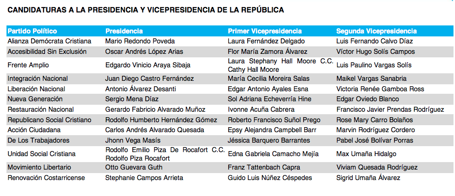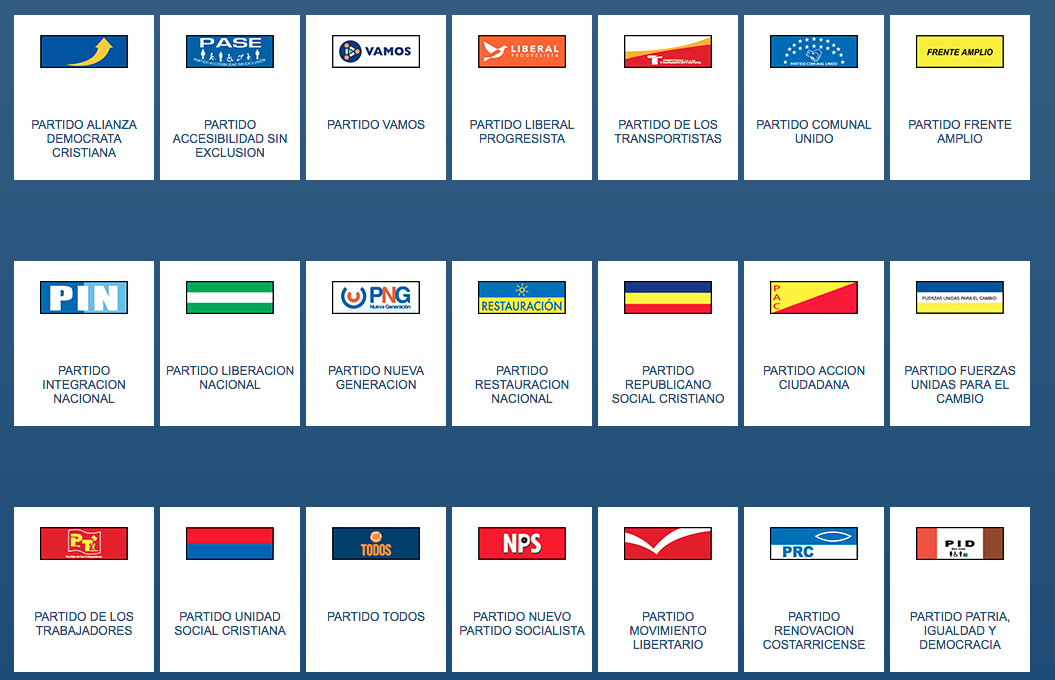 During this election the voters will also pick the legislature representatives as well. In that election we have over TWENTY political parties to choose from below. Costa Rican’s have traditionally split the vote by voting for one party for president and another party as legislative representative.