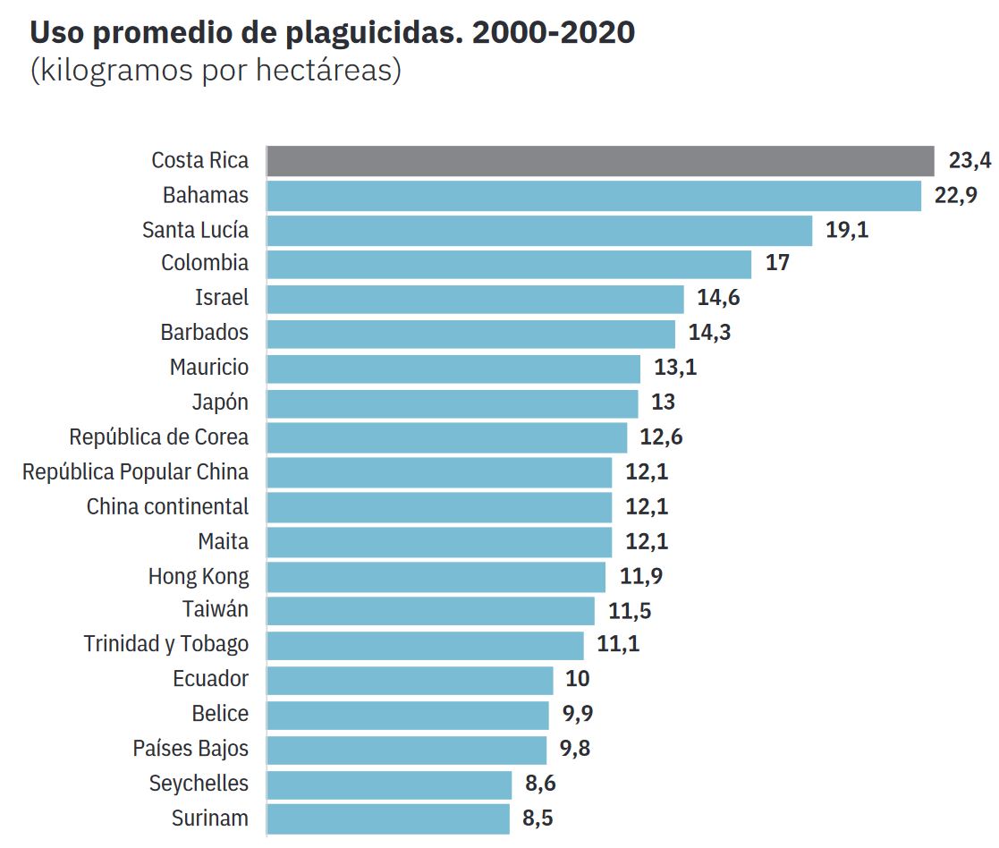 Costa Rica ranks among the top countries worldwide in terms of per capita pesticide use.