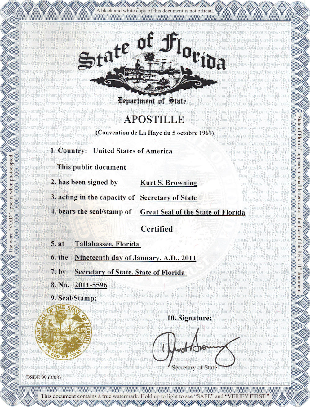 It is important to understand that even though you have an original document such as a birth certificate or marriage certificate issued by your State this document will not be valid in Costa Rica. The process to validate that document is known as an Apostille.