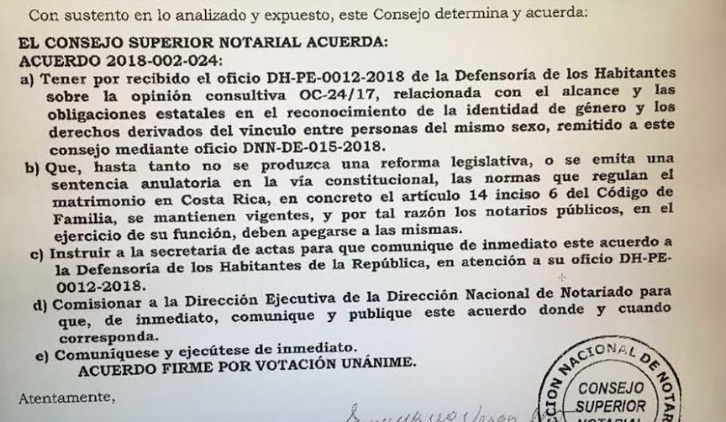 Below is the ruling of the Costa Rican Notary Council: