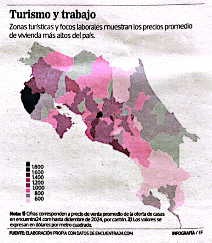 Costa Rica’s real estate market prices are trending upwards in 2025. In this article we review the findings published by “El Financiero” a Costa Rica financial publication that has taken the task of doing a real estate pricing analysis in most of the country, offering insights into pricing trends and regional variations. In 2025, property values have reached new heights, influenced by factors such as increased demand in key areas, limited land availability in the Greater Metropolitan Area (GAM), and the influence of tourism on coastal markets. This blog delves into the factors shaping the market, the most and least expensive regions, and what it means for buyers and investors.