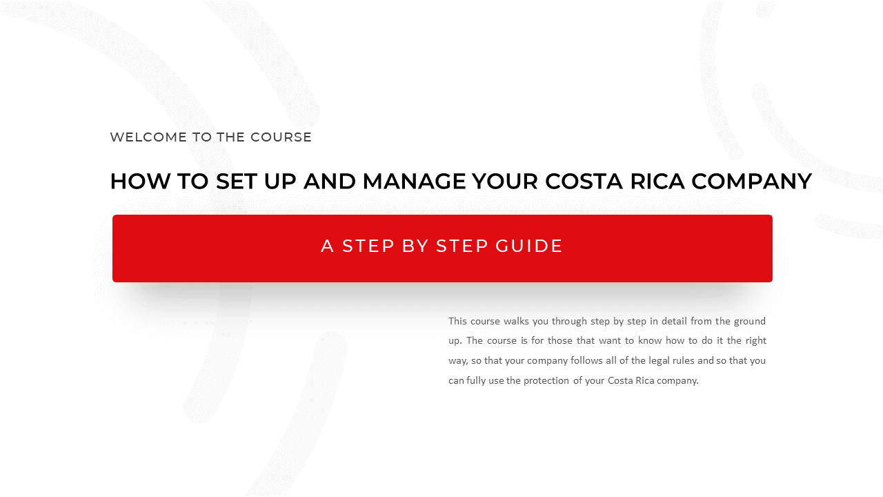This course walks you through step by step in detail from the ground up. The course is for those that want to know how to do it the right way, so that your company follows all of the legal rules and so that you can fully use the protection of your Costa Rica company.